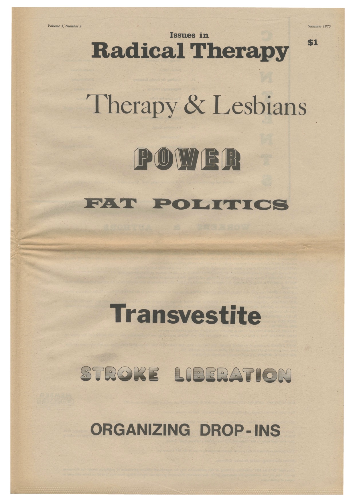 Ein vollständiges Archiv des Journals "Issues in Radical Therapy" ist hier in Arbeit. - A complete archive of the journal "Issues in Radical Therapy" is in progress here. |